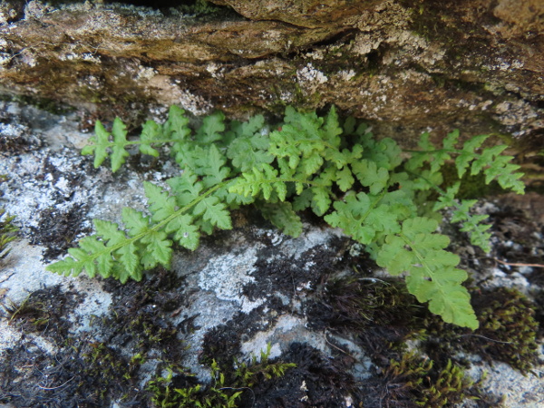 Woodsia ilvensis has hairier leaves than its slightly more abundant congener, Woodsia alpina, which has few hairs on the upper surface.
